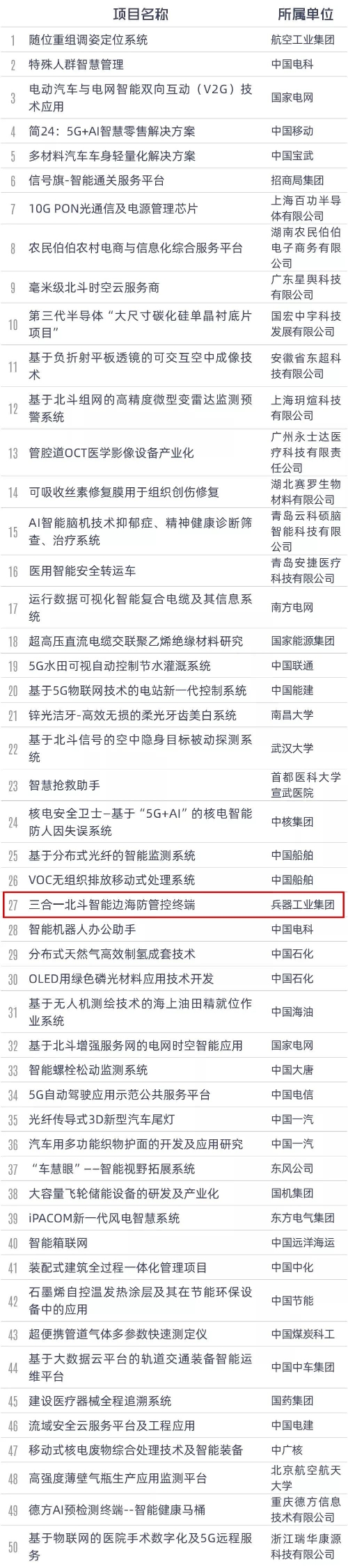 兵器工業集團獲獎項目