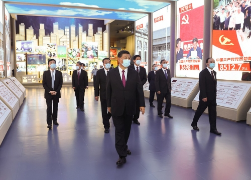 ■ 黨的歷史是最生動、最有說服力的教科書。我們黨的一百年,是矢志踐行初心使命的一百年,是篳路藍縷奠基立業的一百年,是創造輝煌開辟未來的一百年。回望過往的奮斗路,眺望前方的奮進路,必須把黨的歷史學習好、總結好,把黨的寶貴經驗傳承好、發揚好,銘記奮斗歷程,擔當歷史使命,從黨的奮斗歷史中汲取前進力量。要教育引導廣大黨員、干部通過參觀學習,更加自覺地不忘初心、牢記使命,增強“四個意識”,堅定“四個自信”,始終在思想上政治上行動上同黨中央保持高度一致,堅定理想信念,學好用好黨的創新理論,賡續紅色血脈,發揚光榮傳統,發揮先鋒模范作用,團結帶領全國各族人民,更好立足新發展階段、貫徹新發展理念、構建新發展格局,全面做好改革發展穩定各項工作,匯聚起全面建設社會主義現代化國家、實現中華民族偉大復興中國夢的磅礴力量