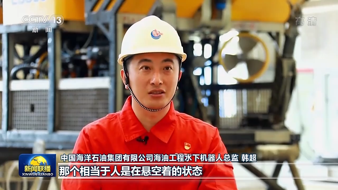 中國海洋石油集團有限公司海油工程水下機器人總監 韓超:水下面是有水流的,不像我們在陸地。陸地上你有支撐,那個相當于人是在懸空著的狀態。